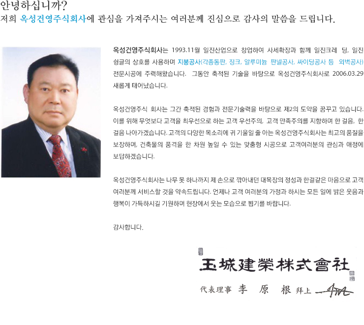 »óÈ£¸í ¿Á¼º°Ç¿µ(ÁÖ) | ´ëÇ¥ÀÚ ÀÌ¿ø±Ù | »ç¾÷ÀÚµî·Ï¹øÈ£ 211-86-60320 º¸À¯¹øÈ£ °Ç¼³°ø»ç¾÷(10-3542)